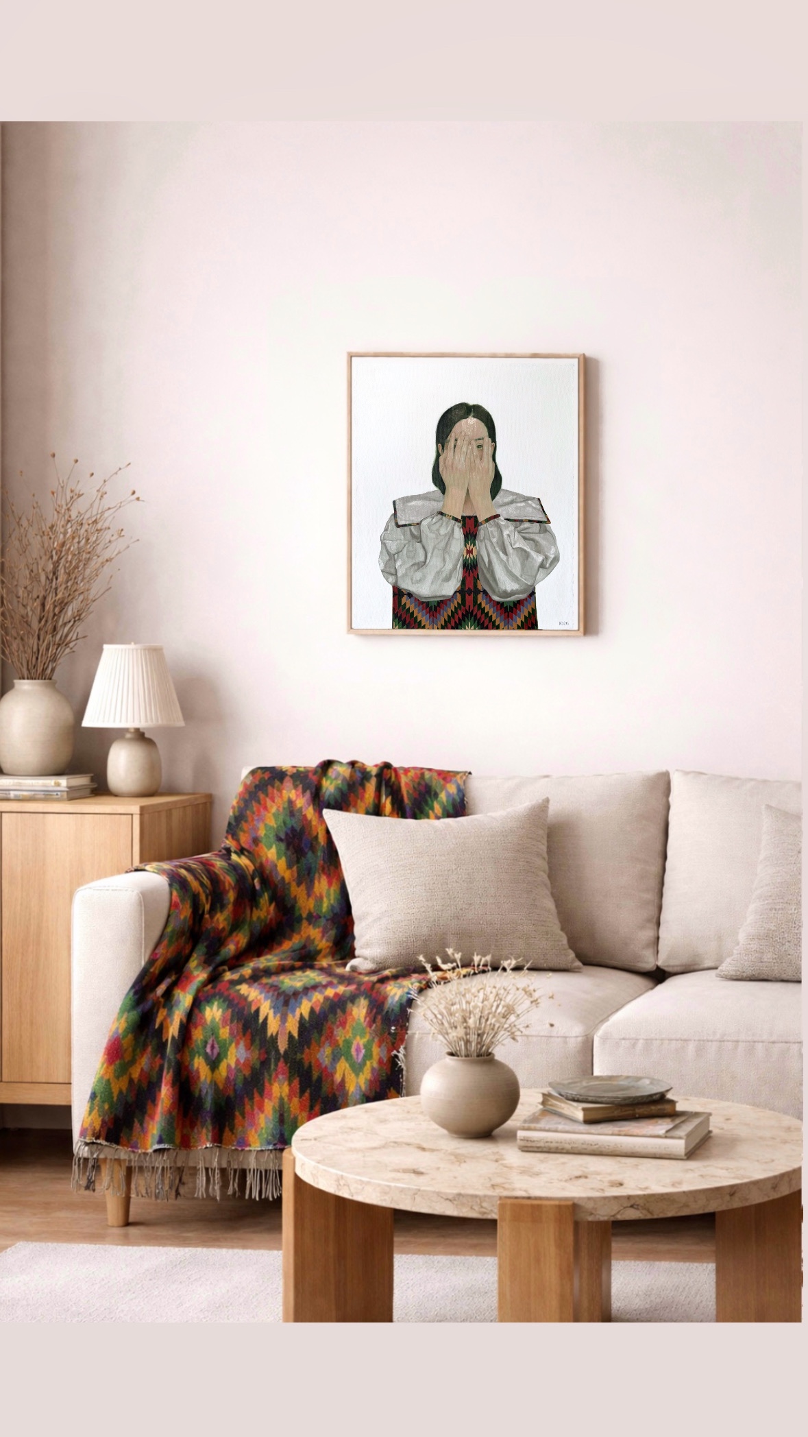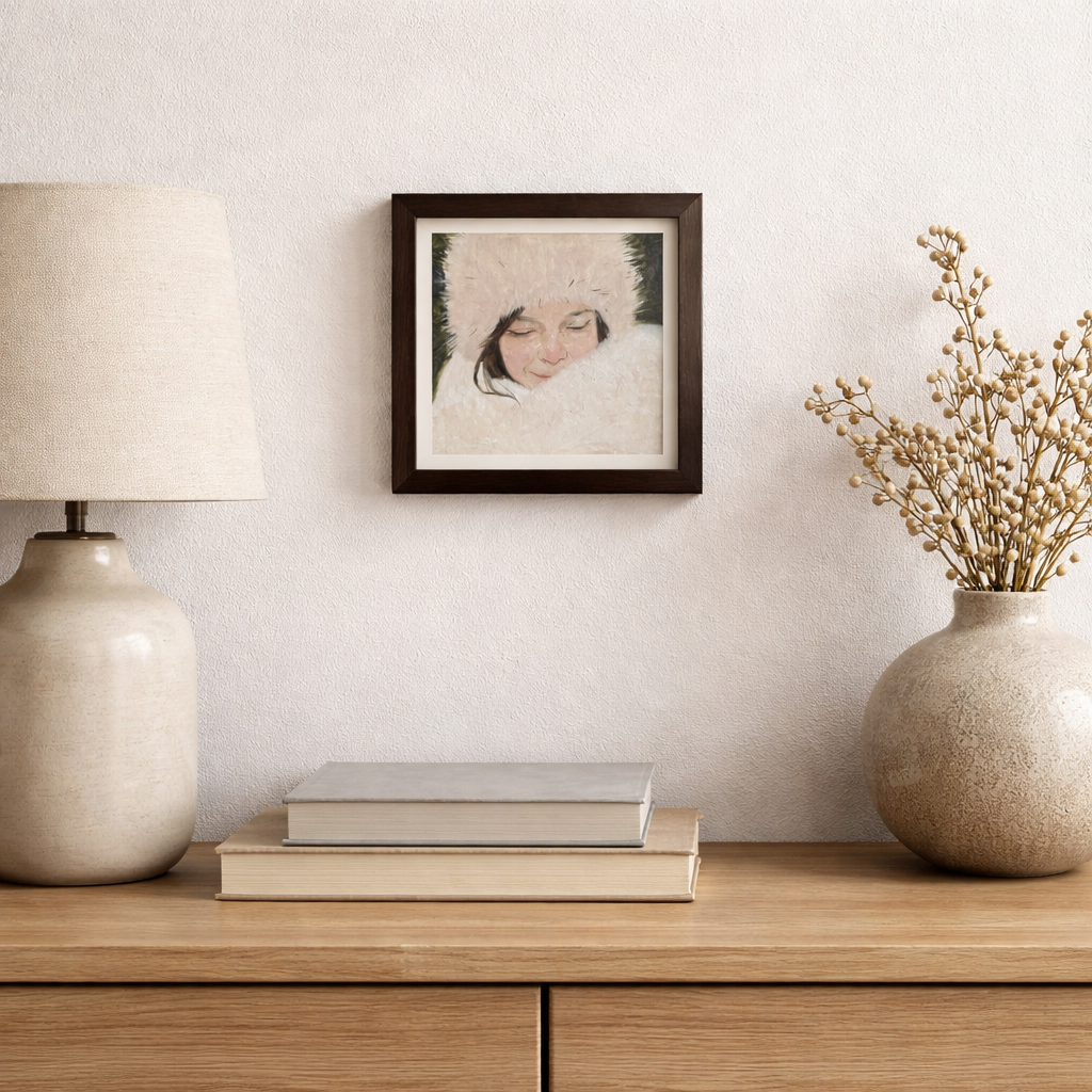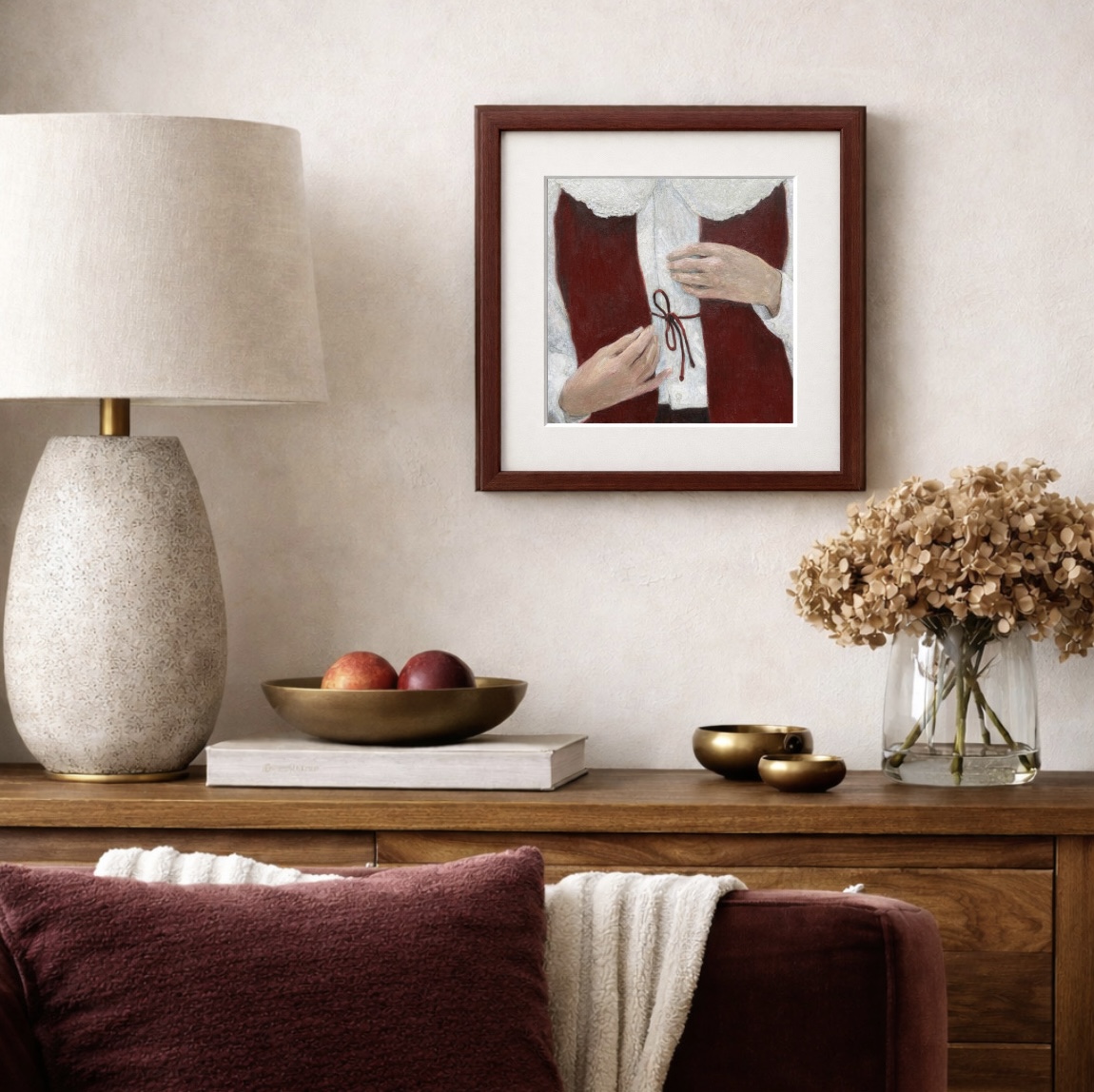 Левая часть триптиха "Модистка", 2024 Смешанная техника, 30х30