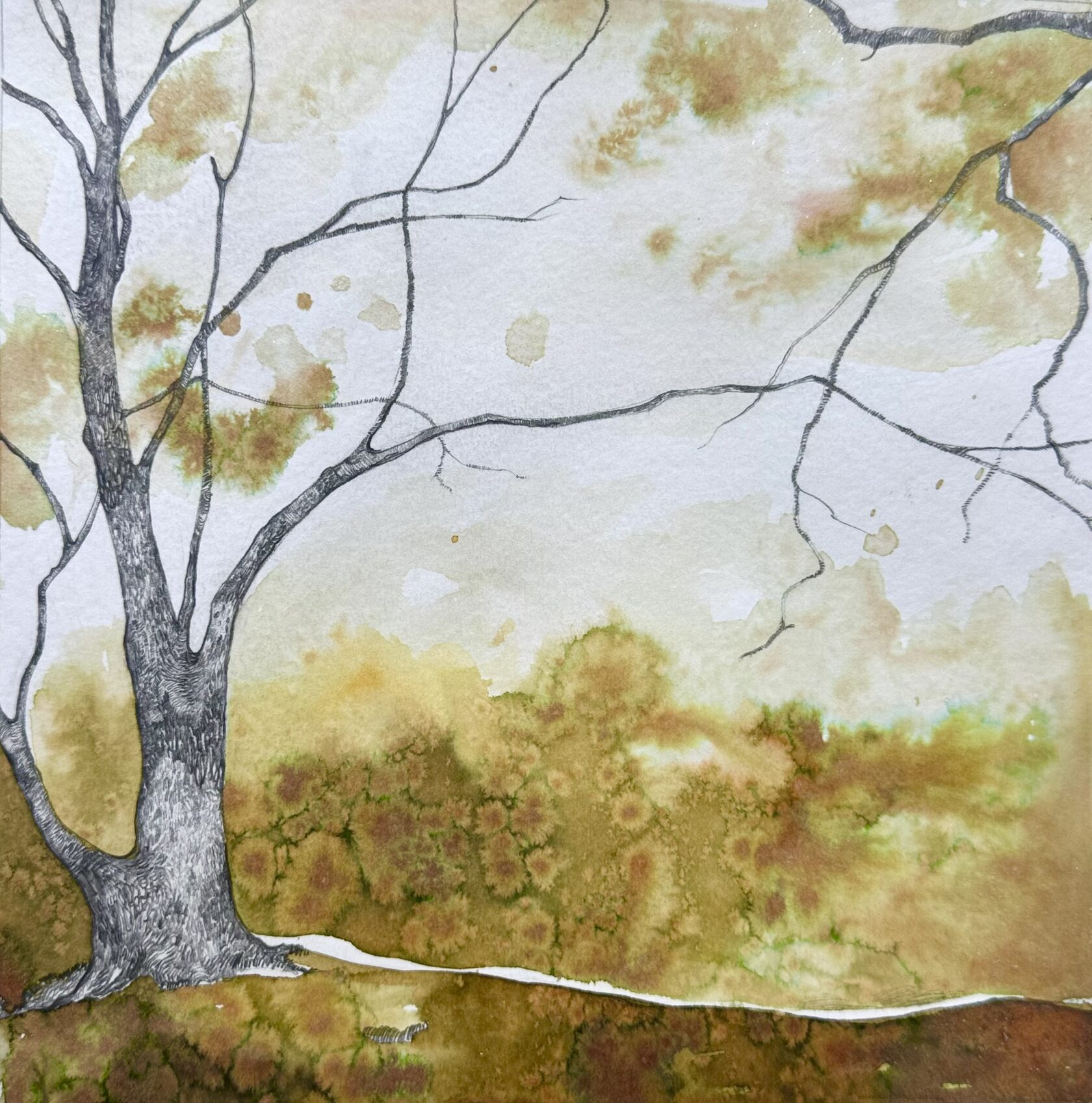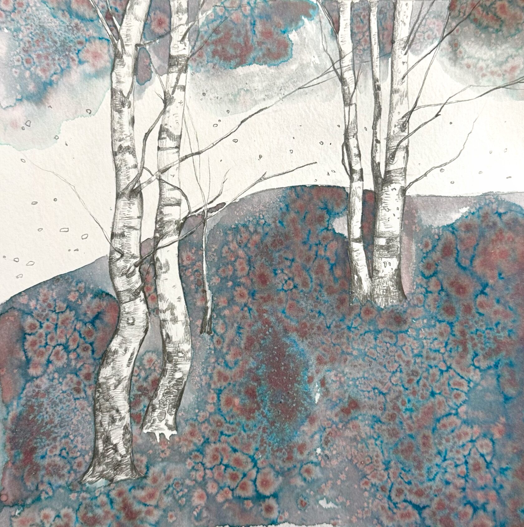 Бумага/карандаш/чернила, 20х20, по паспарту 30х30, 2025