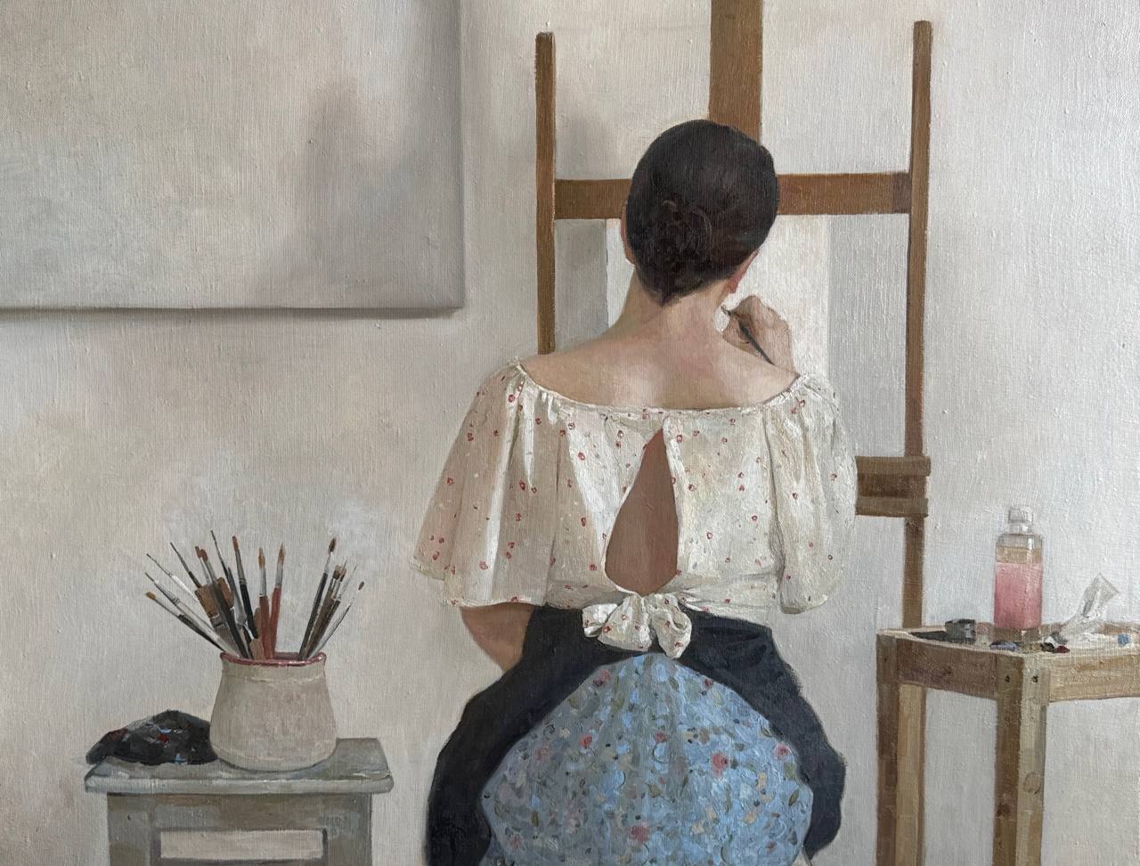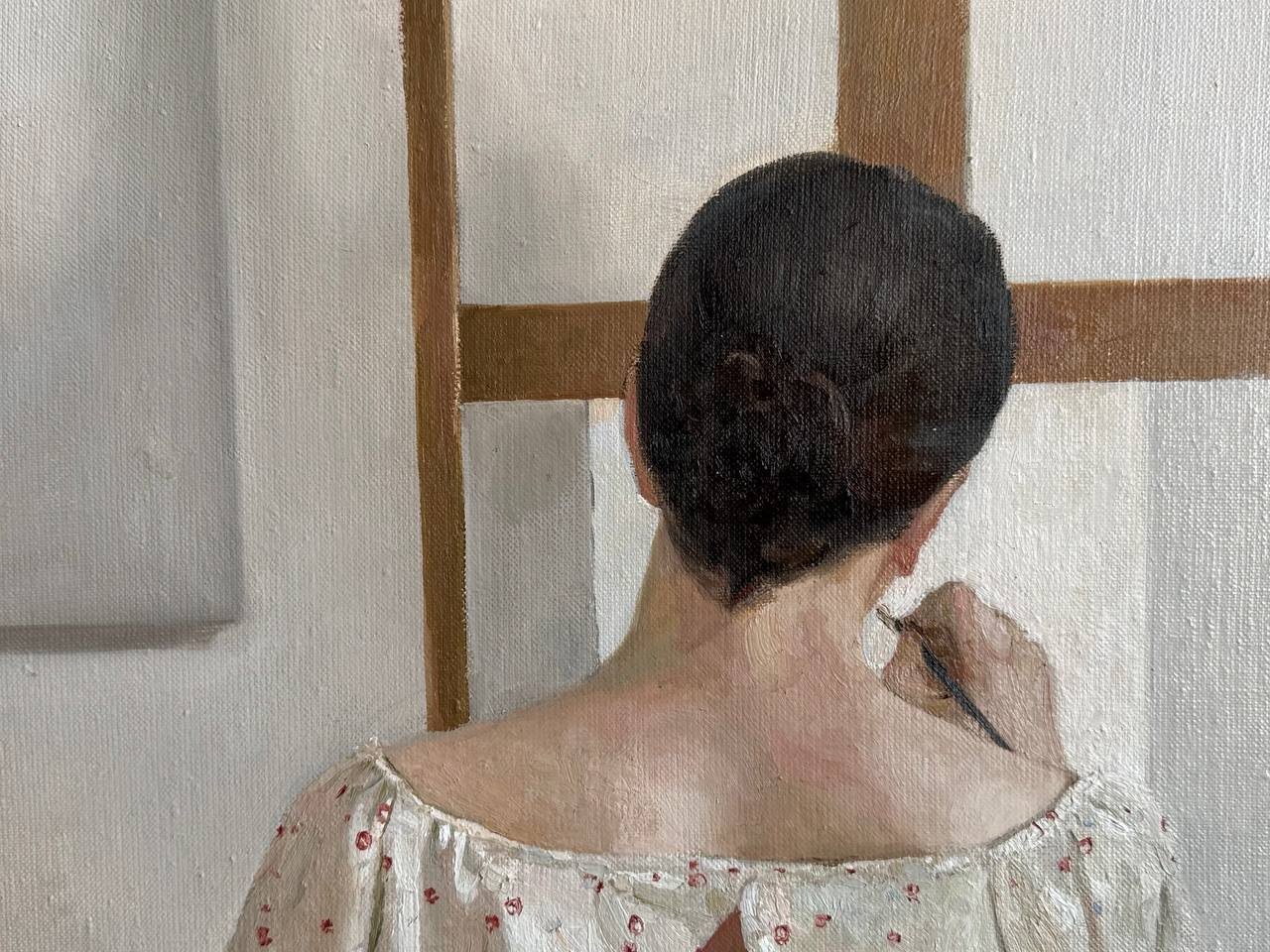 Правая часть триптиха "Модистка", 2024 Смешанная техника, 30х30