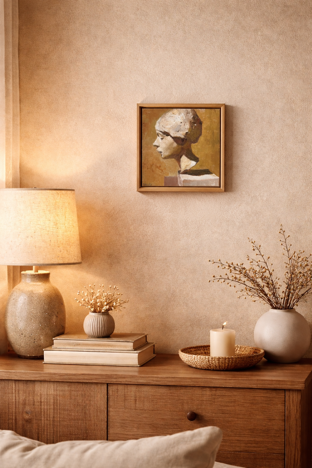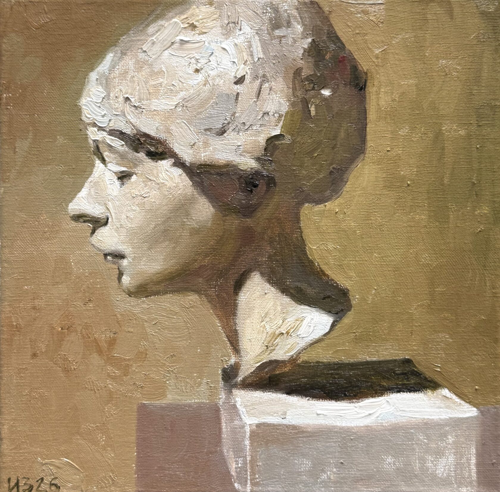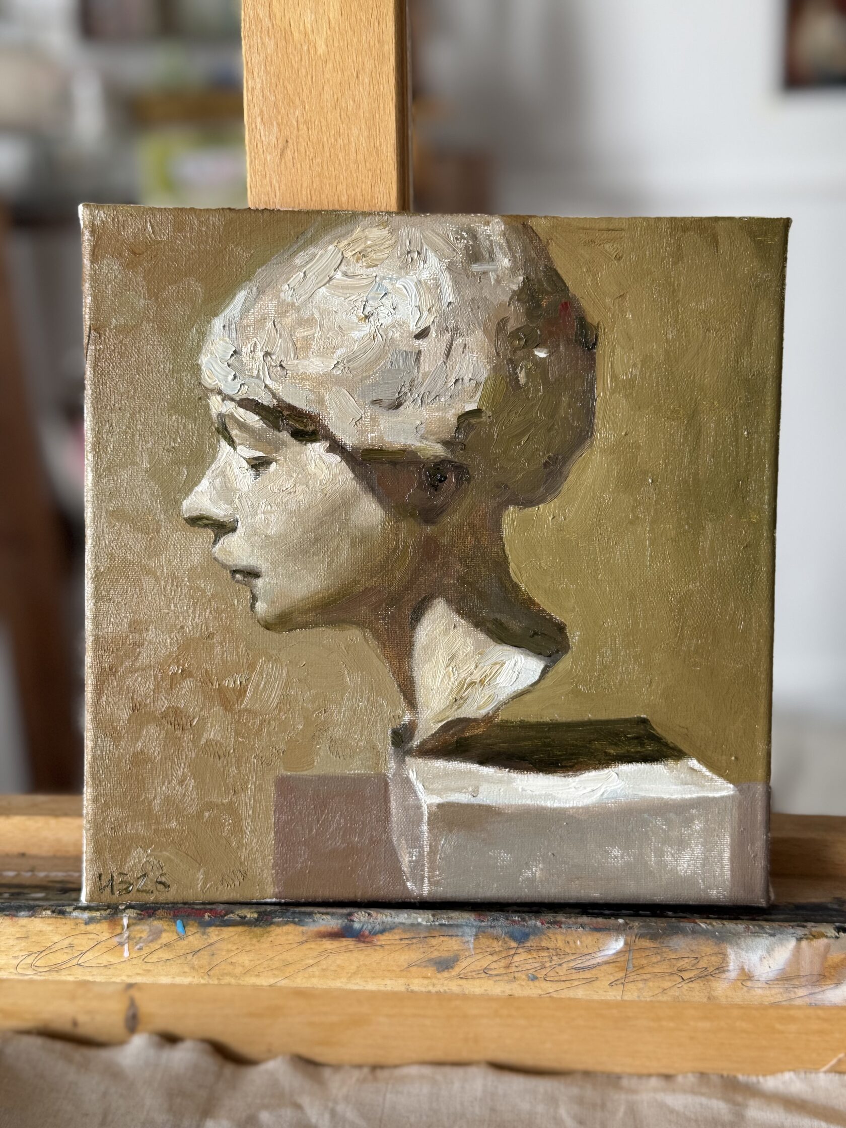 Этот скульптурный портрет я увидела в Нижегородском Художественном Музее. Его автор - Сарра Лебедева, и он так и называется - "Портрет О.М." Я залюбовалась им и решила его обязательно написать. Возможно, это начало целой скульптурной серии!
