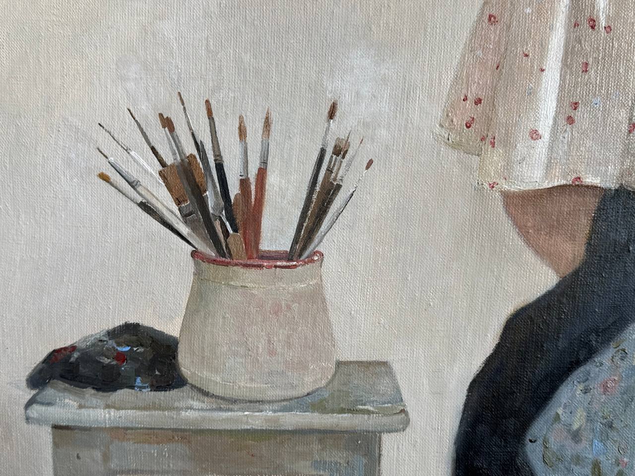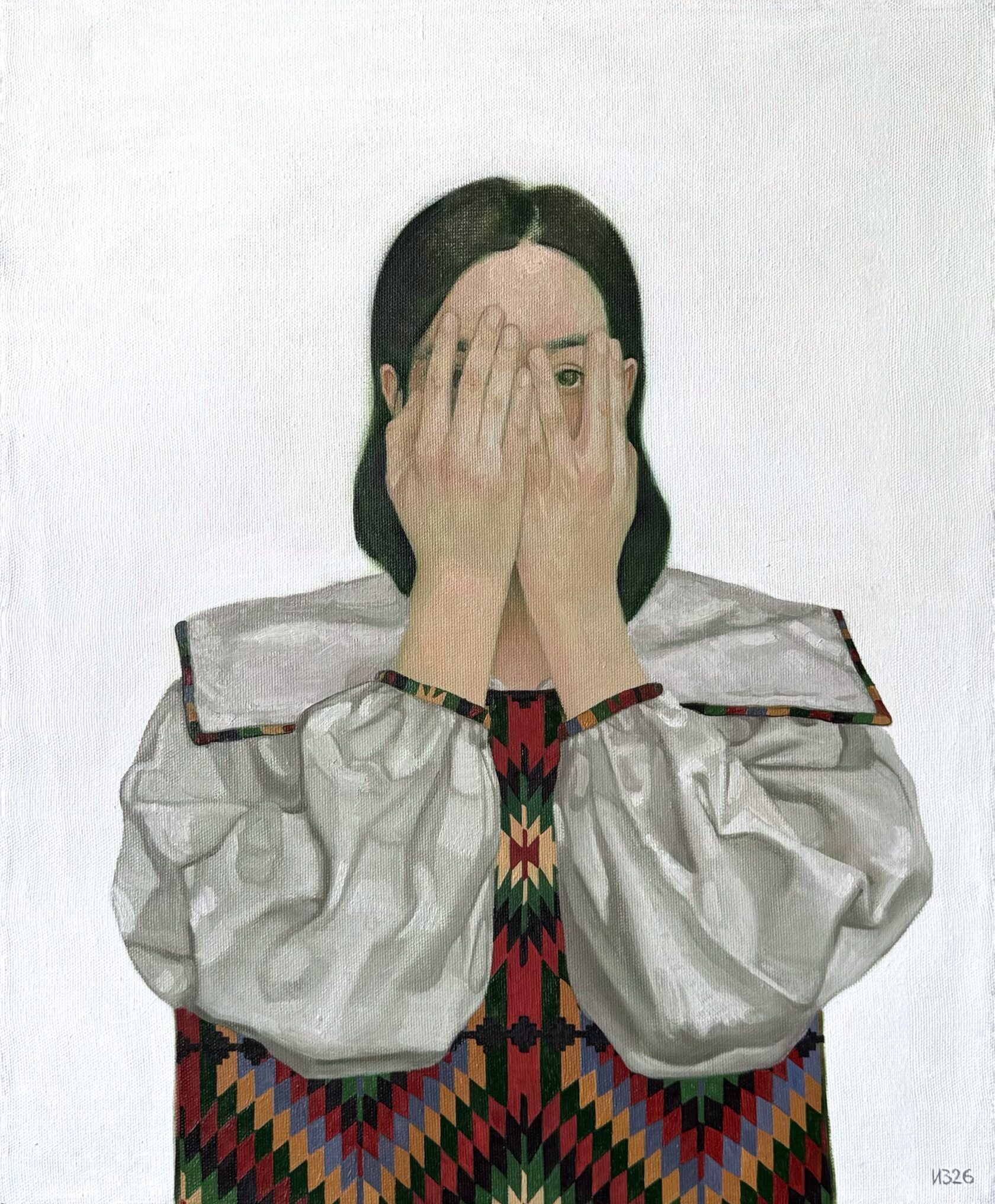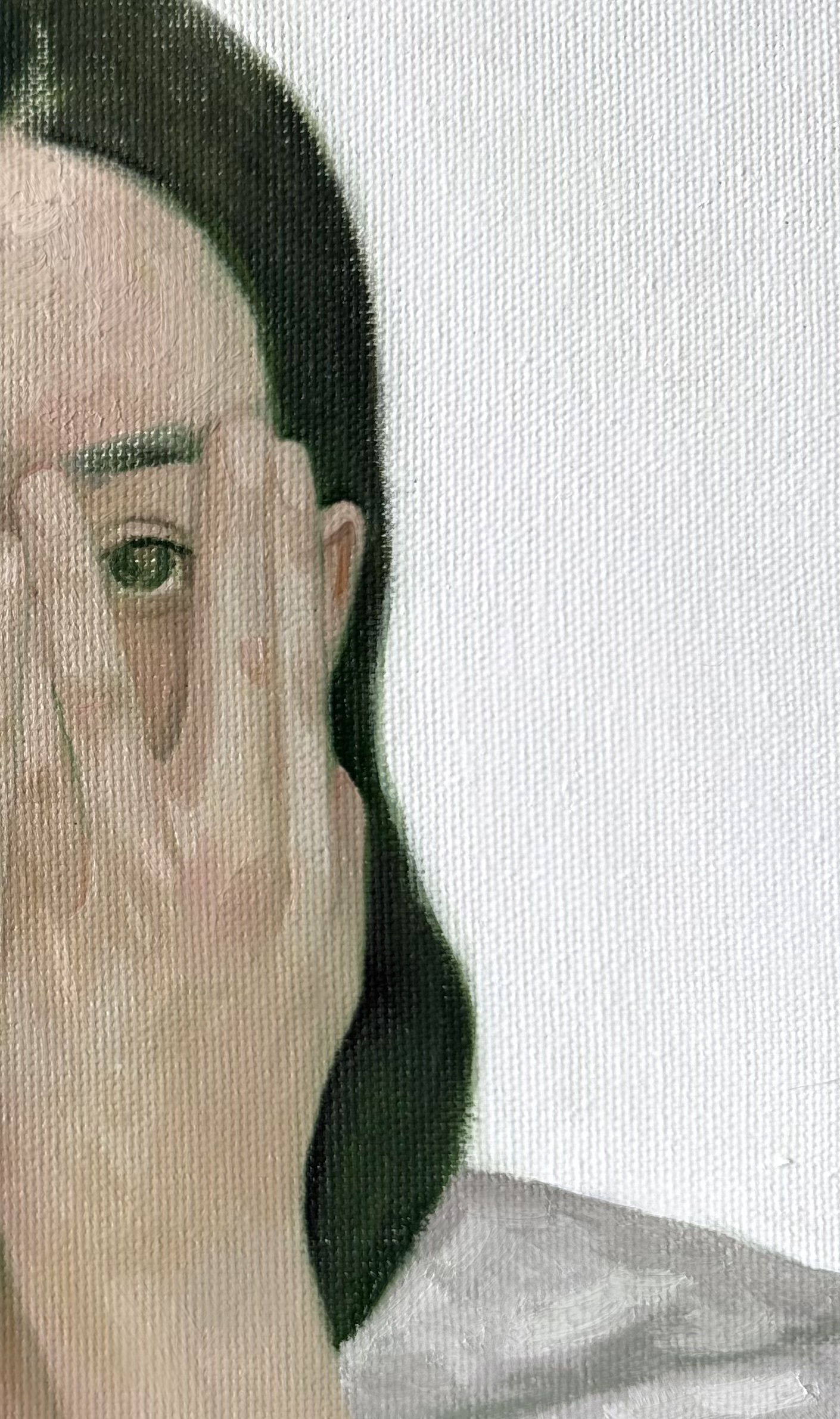 Мои волосы начали седеть в 15 лет. Сейчас, спустя 10 лет, серебристых волосков уже довольно много, и с каждым днём всё больше. Моё рабочее место в мастерской находится у зеркала и напротив окна. Часто, когда я сажусь за работу, перед этим кидаю взгляд в зеркало и ужасаюсь - уже вырисовываются целые пряди, и при таком освещении их видно даже если не приглядываться. Что ж, я решила написать автопортрет, в котором моя голова будет полностью седой, и, может быть, меня перестанет пугать такое стремительное старение. Посмотрим. Забавный факт - насмотрелась на себя седую, пока писала, потом глянула в зеркало - и уже непривычно. И вроде не такая уже и седая.