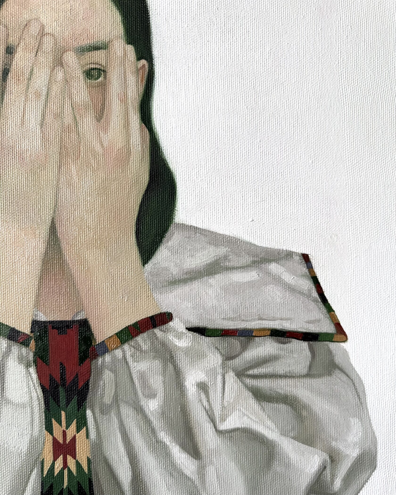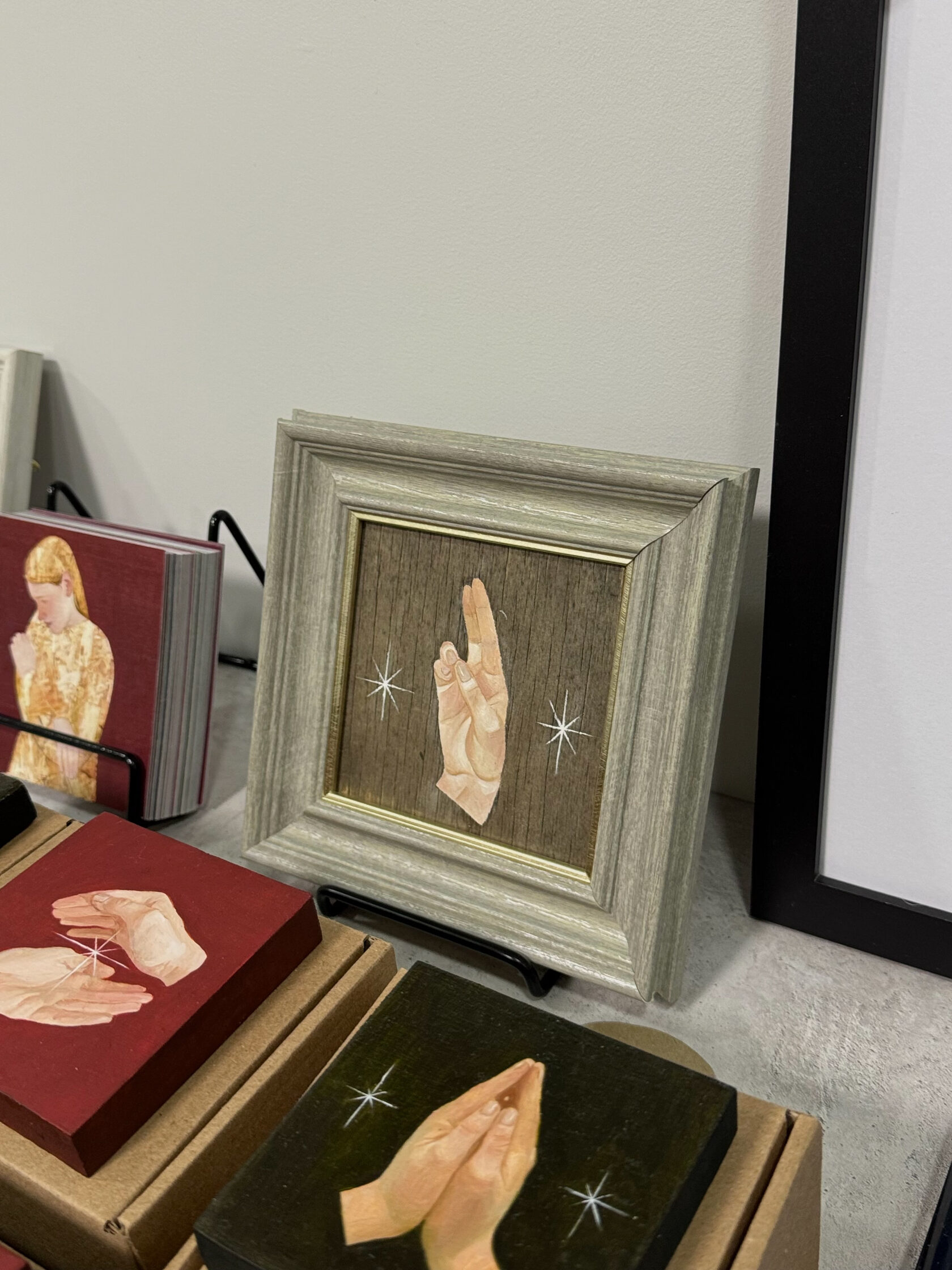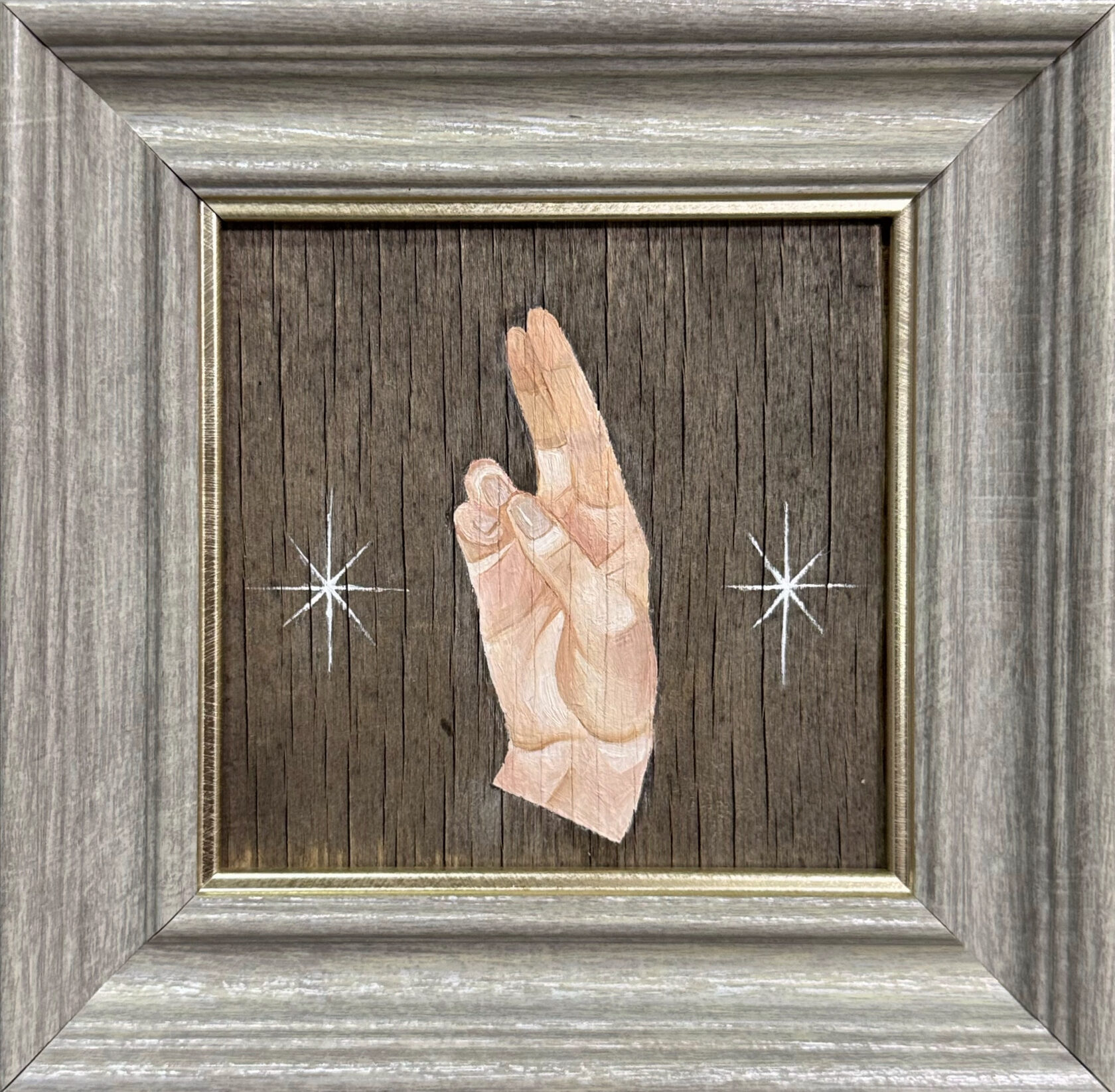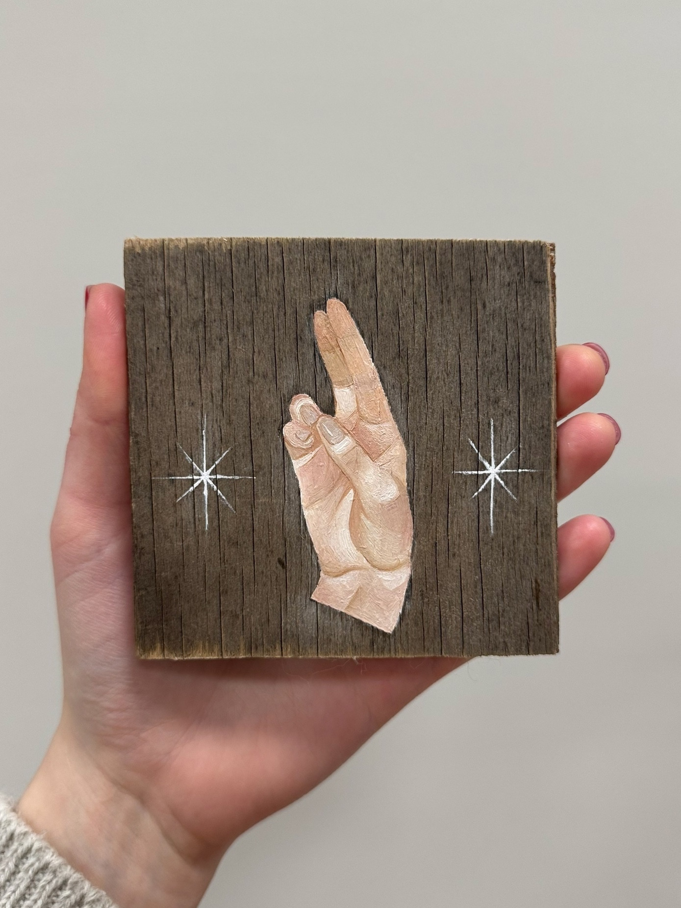 Левая часть диптиха "Откуда на небе берутся звезды" Холст/масло, вышивка, 30х30, 2025