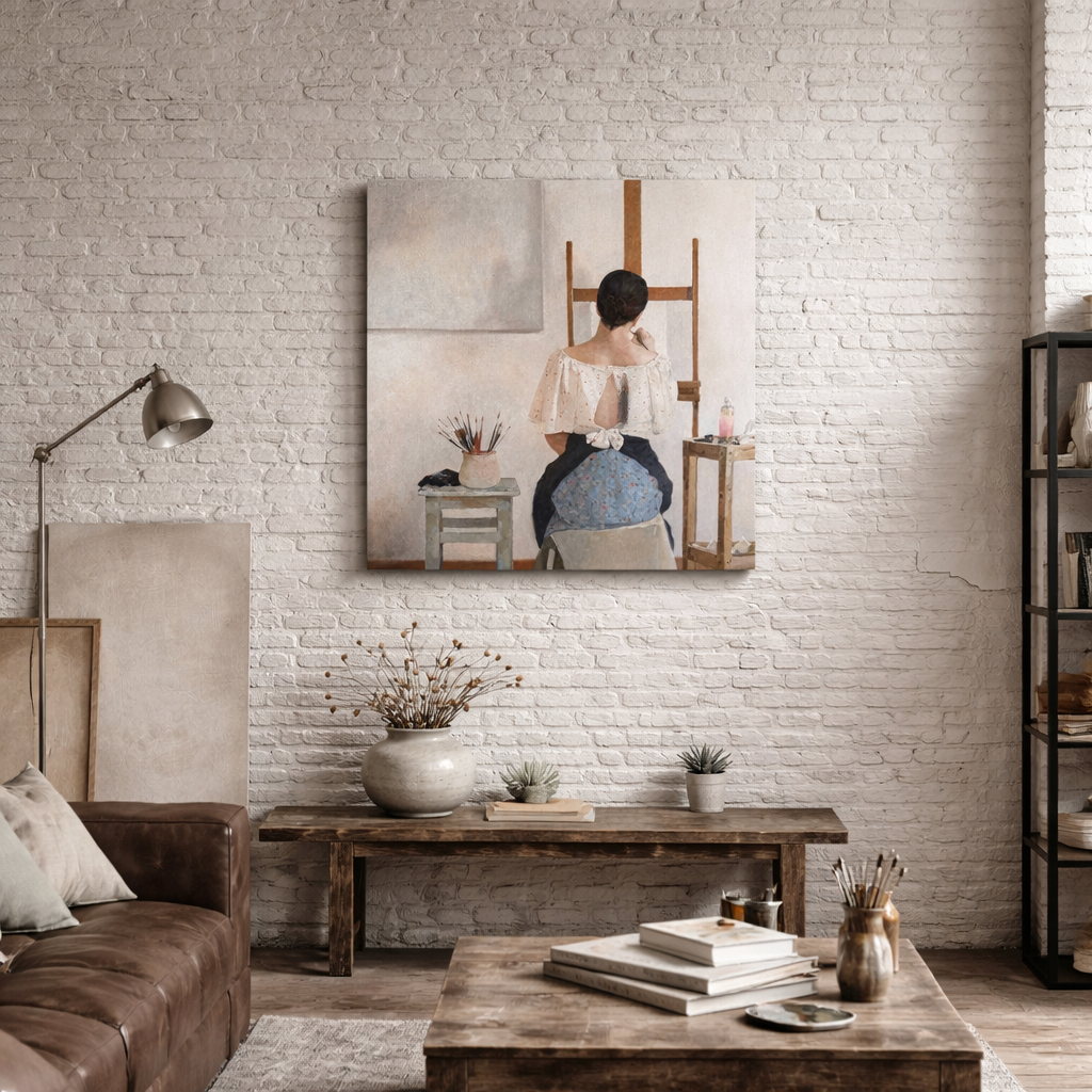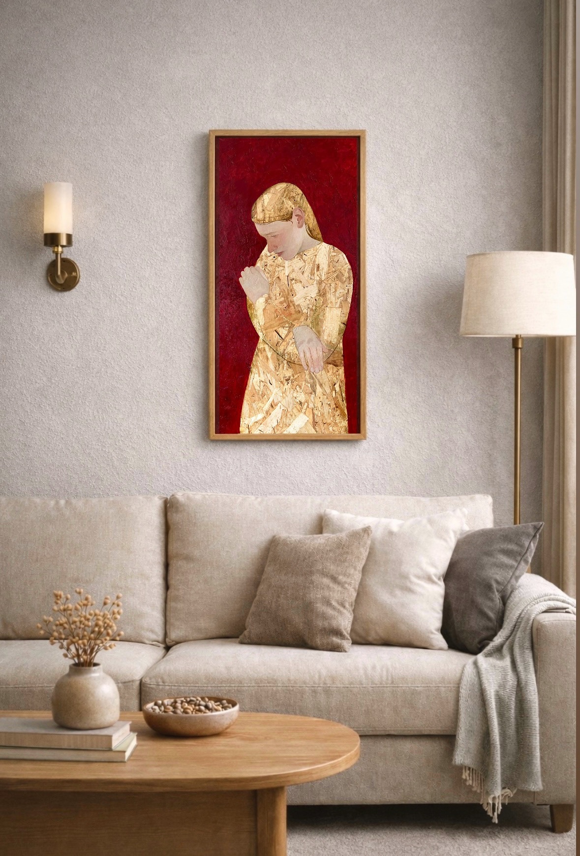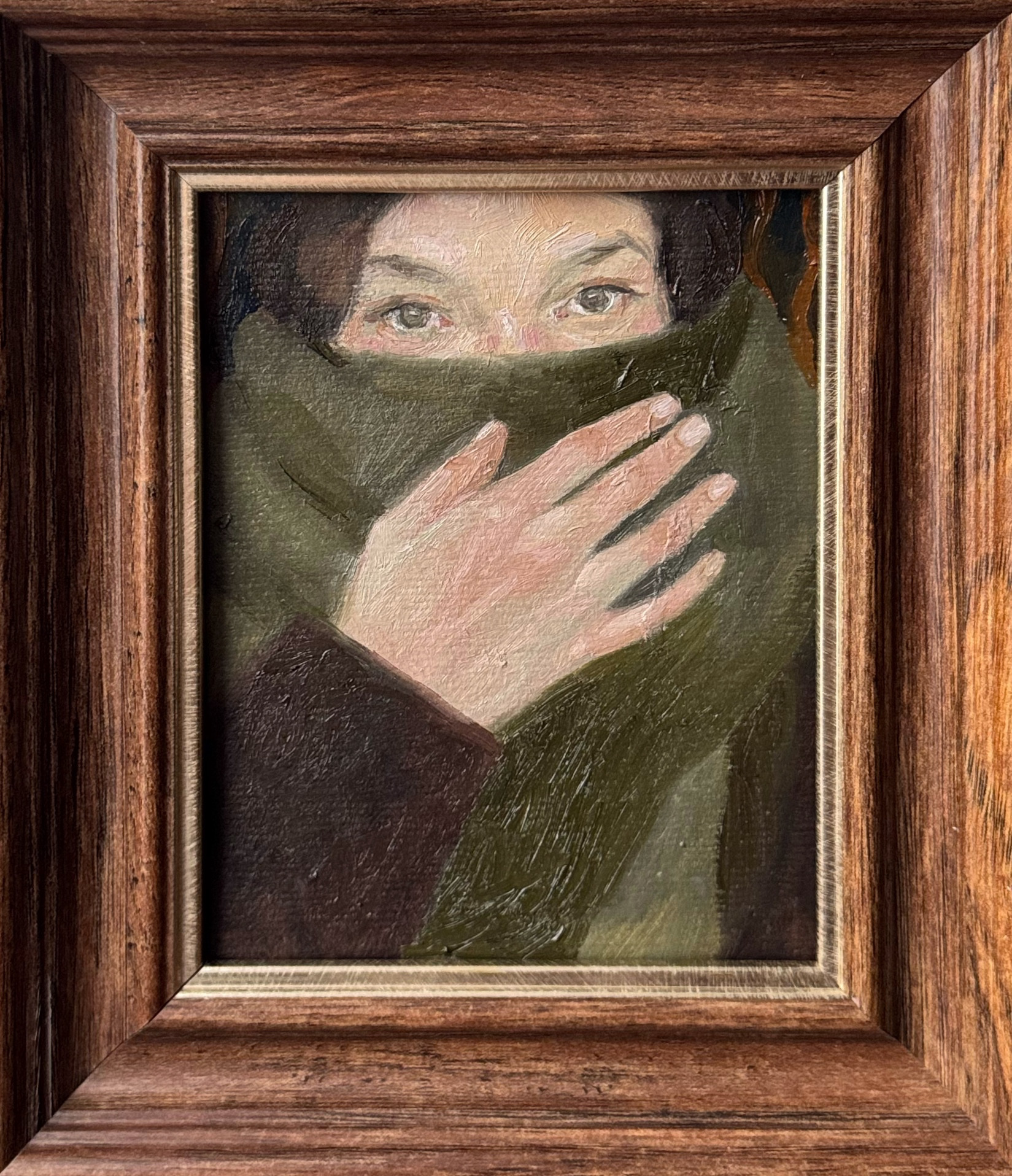 Центральная часть триптиха "Модистка", 2024 Смешанная техника, 30х30