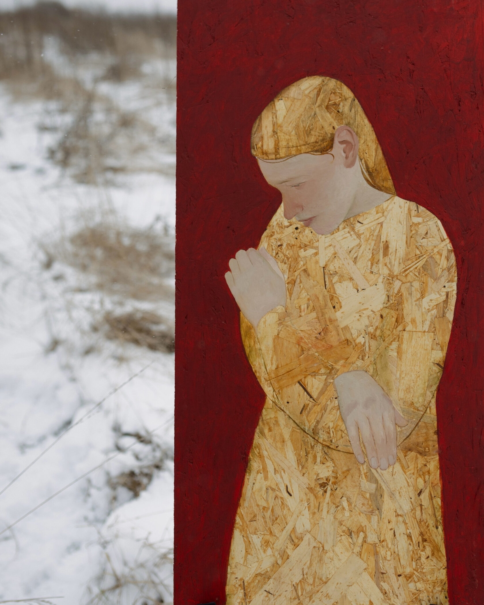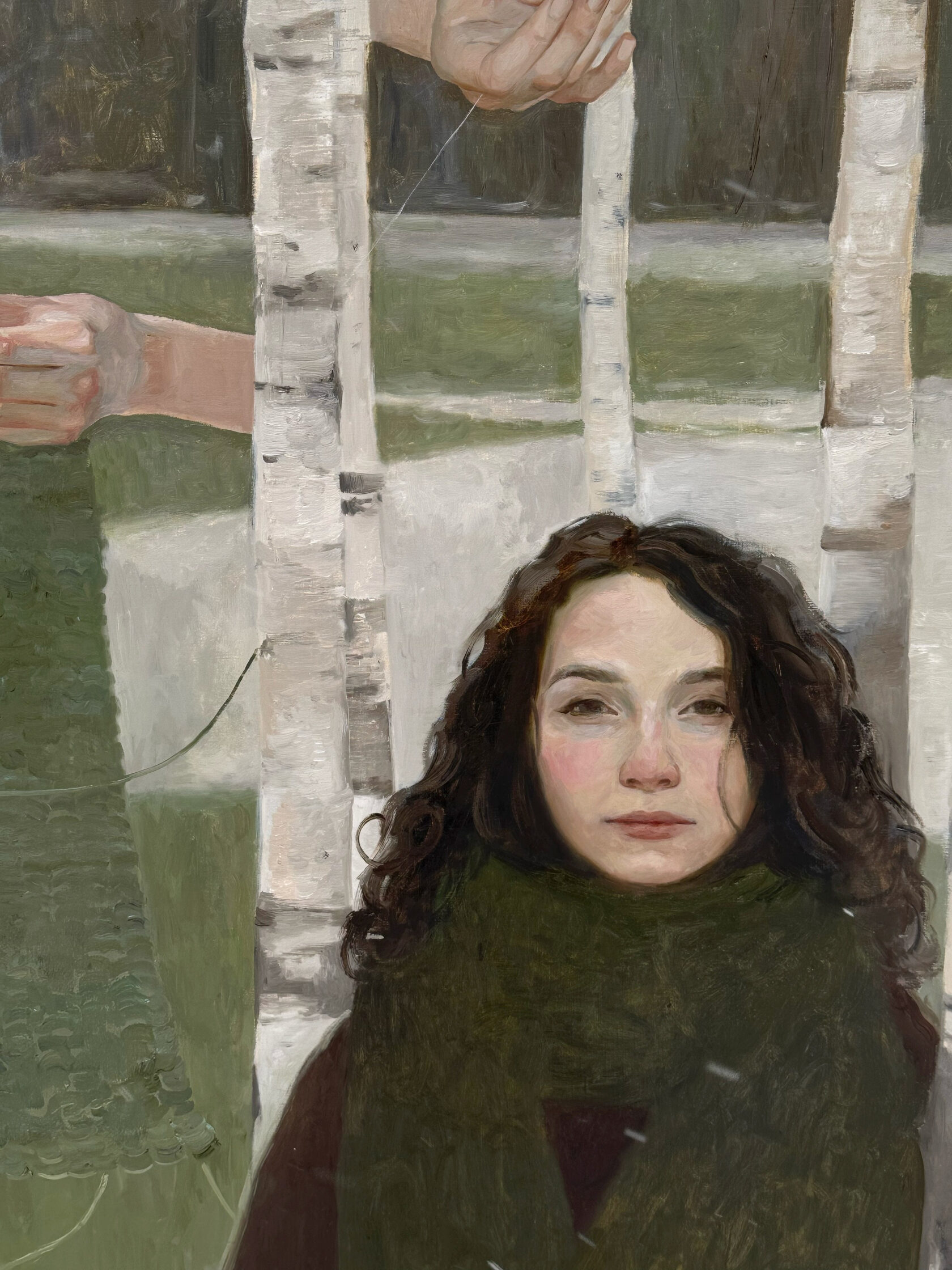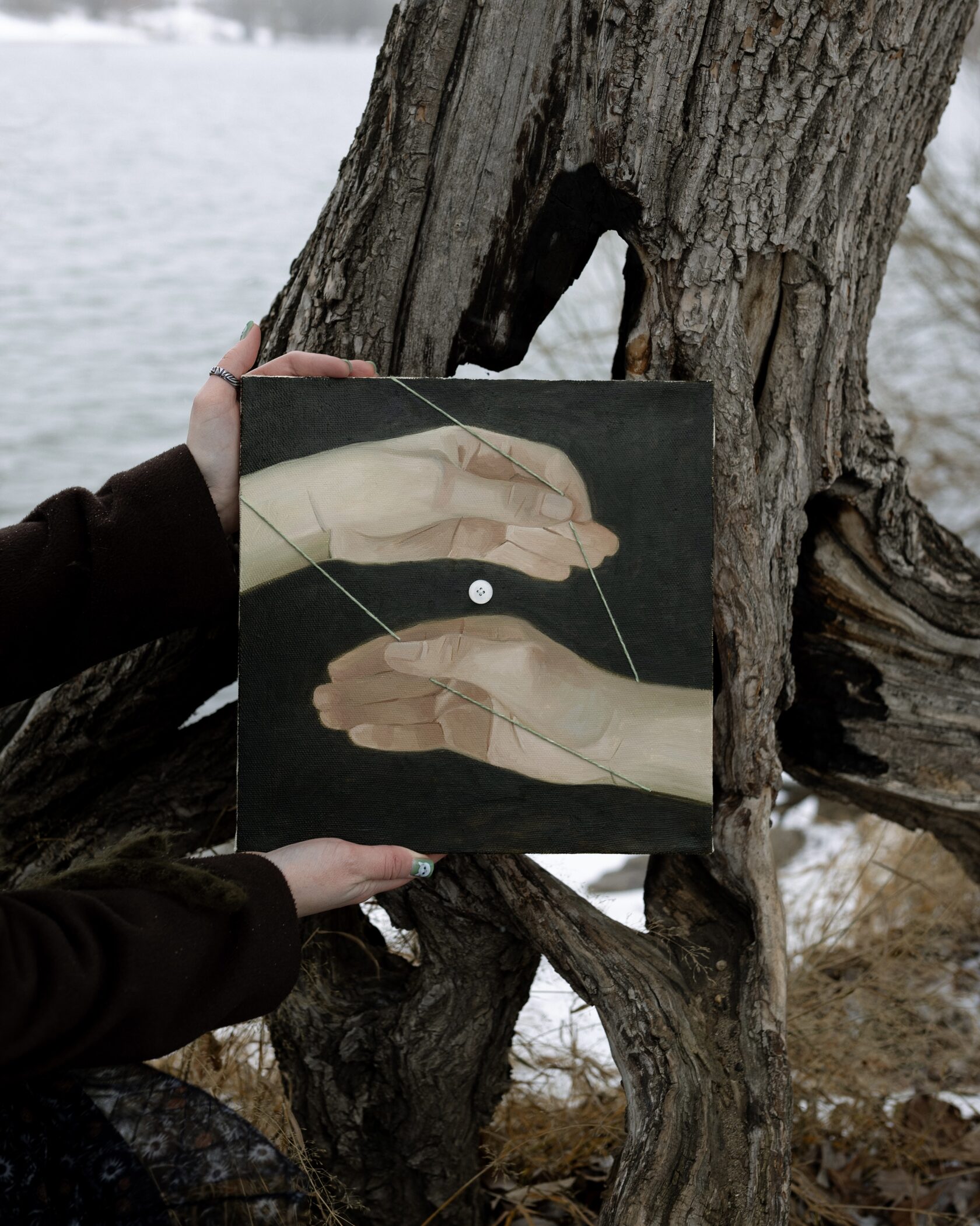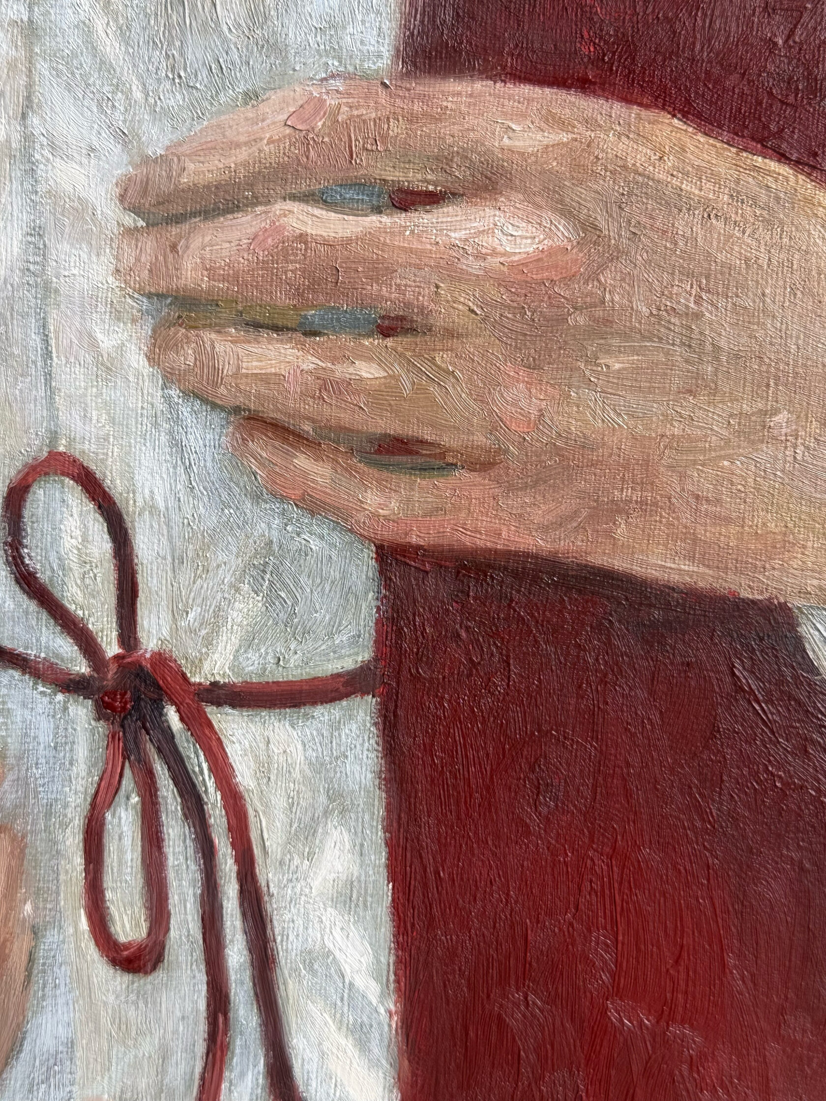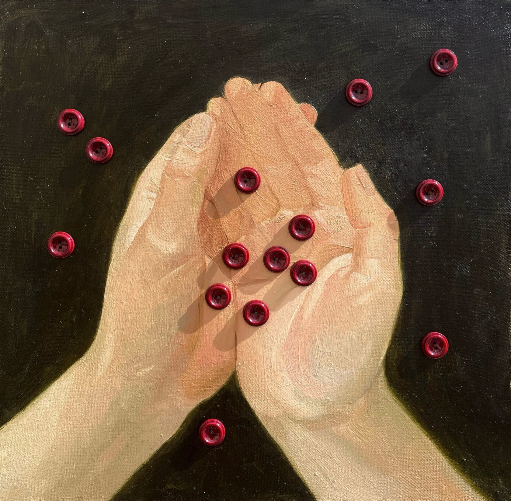 Левая часть диптиха "Откуда на небе берутся звезды" Холст/масло, вышивка, 30х30, 2025