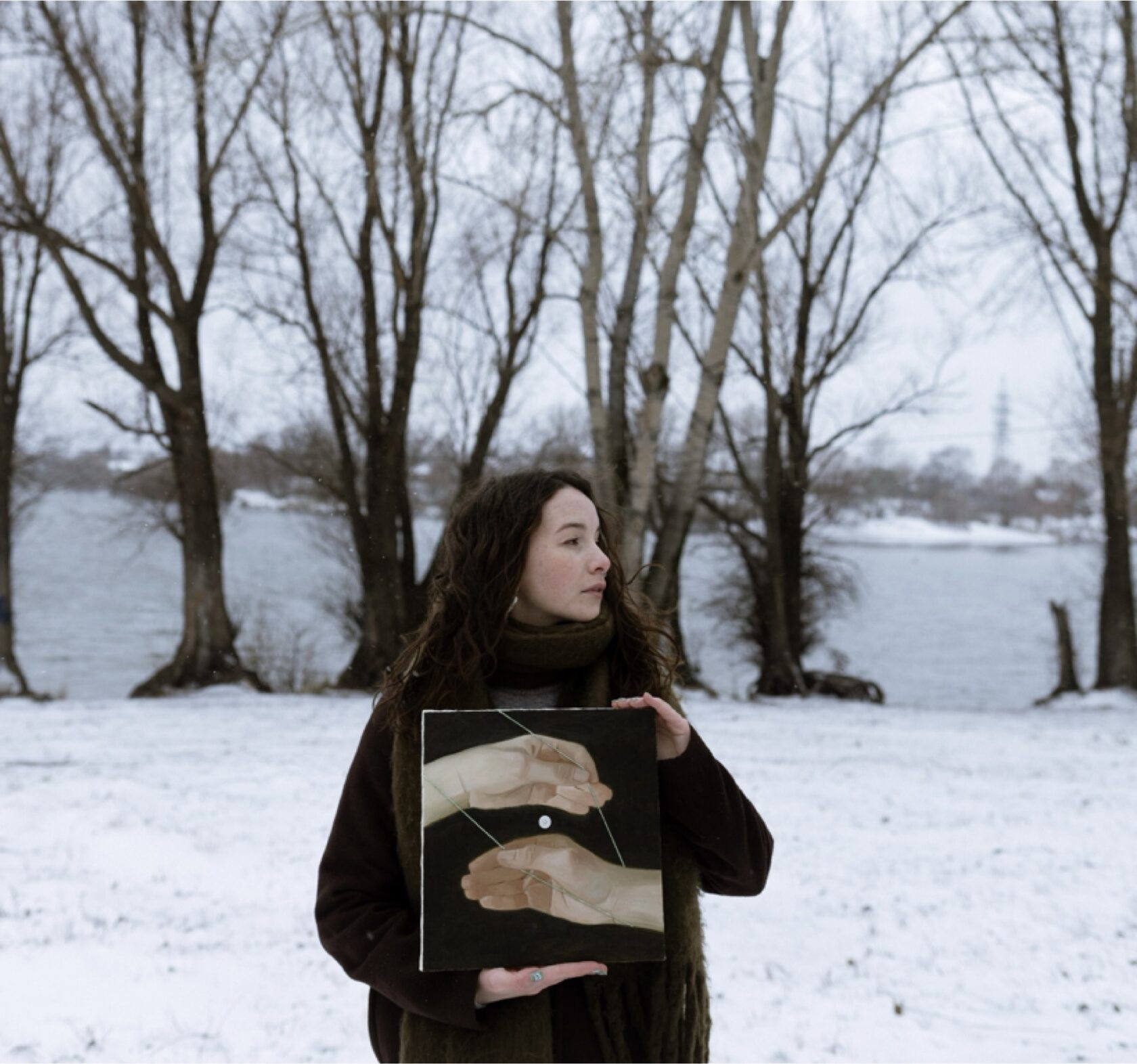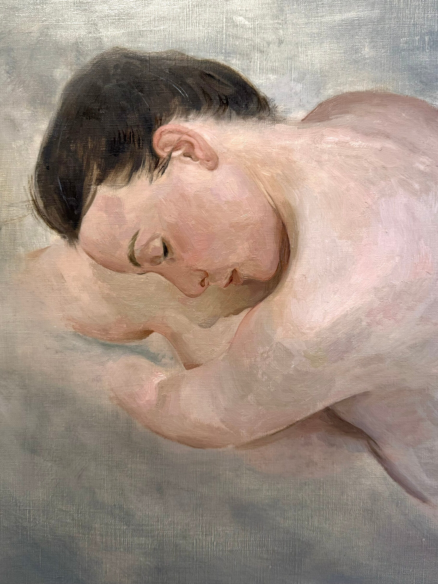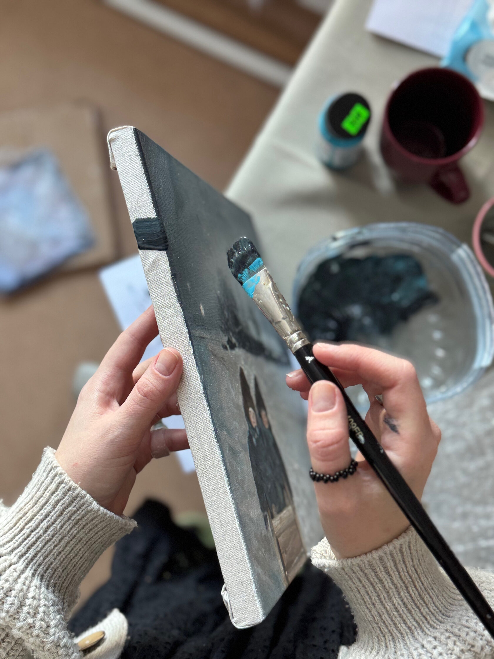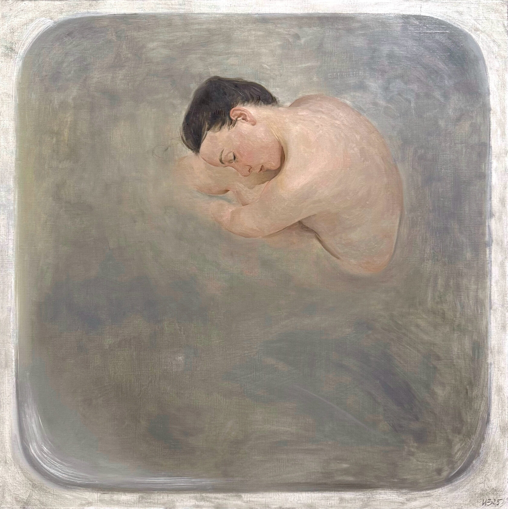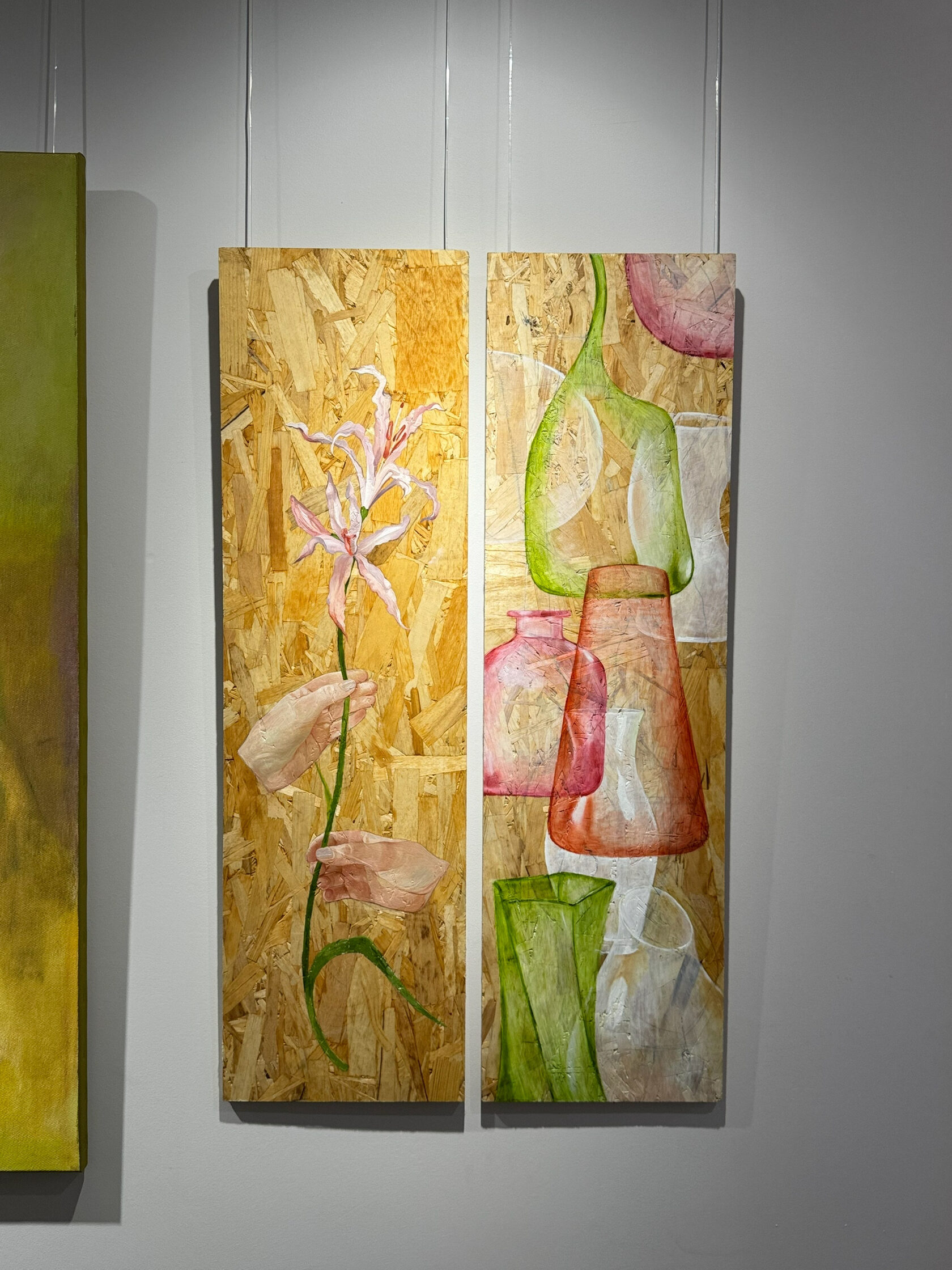 Левая часть диптиха "Откуда на небе берутся звезды" Холст/масло, вышивка, 30х30, 2025