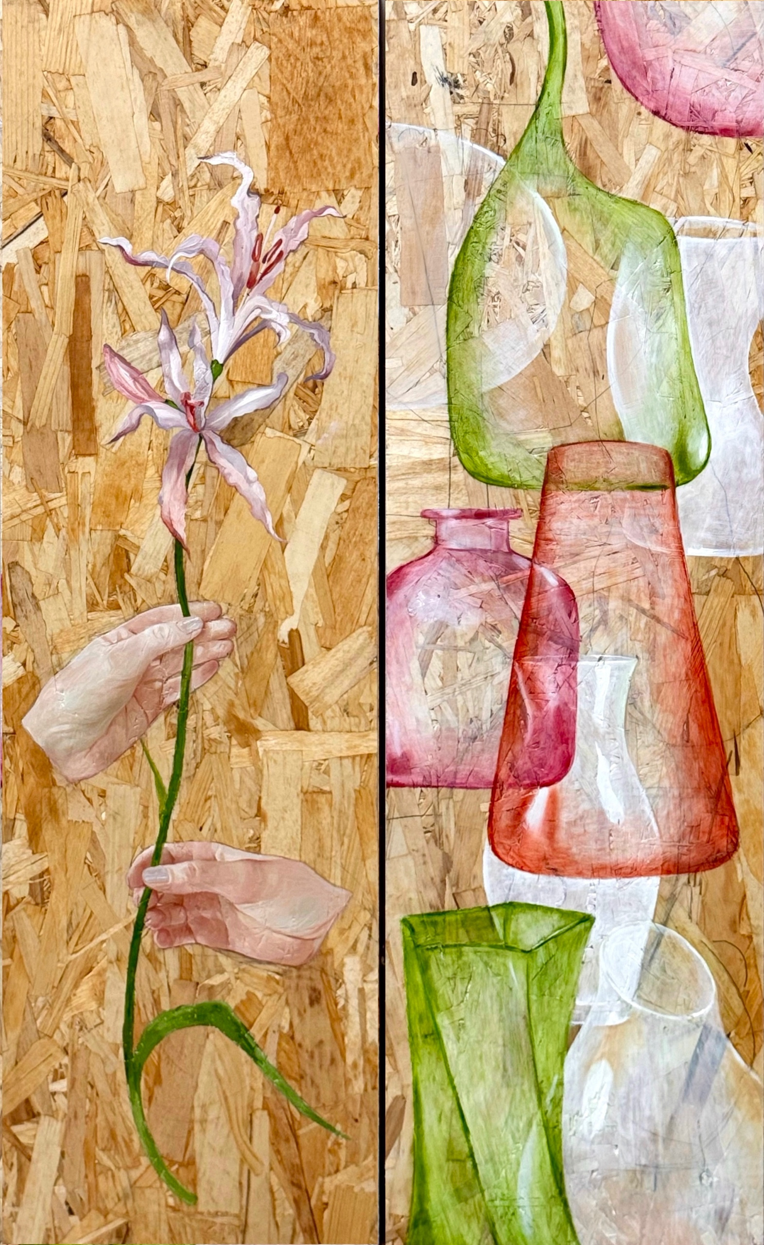 Нерине - это очень красивое цветочное название. А еще оно созвучно с моим именем. Я хотела написать Нерине в вазе, но не выбрала, в какой именно. Поэтому решила отдать ей все вазы, которые нашла в своей голове. В каждой из них Нерине будет смотреться по-разному.