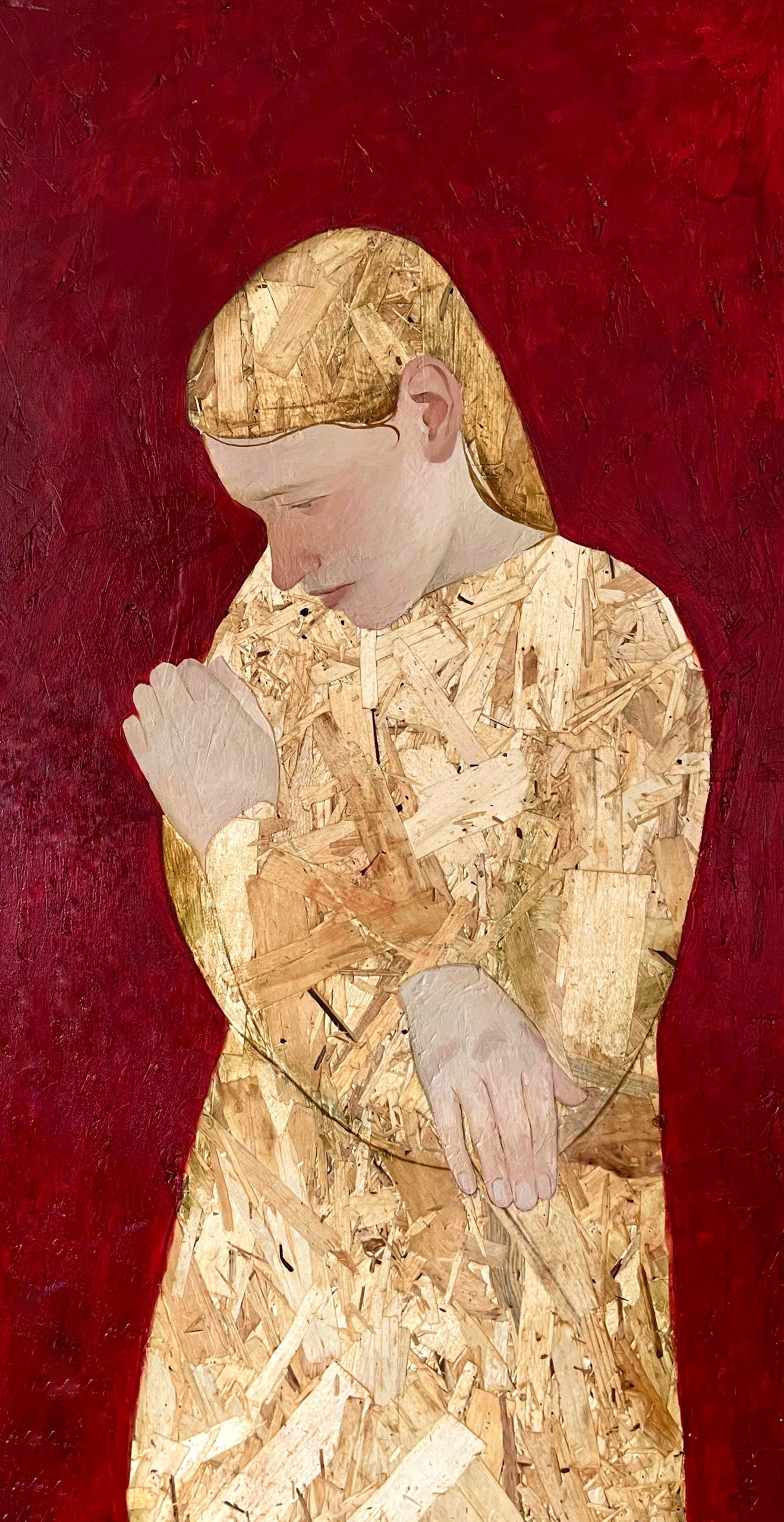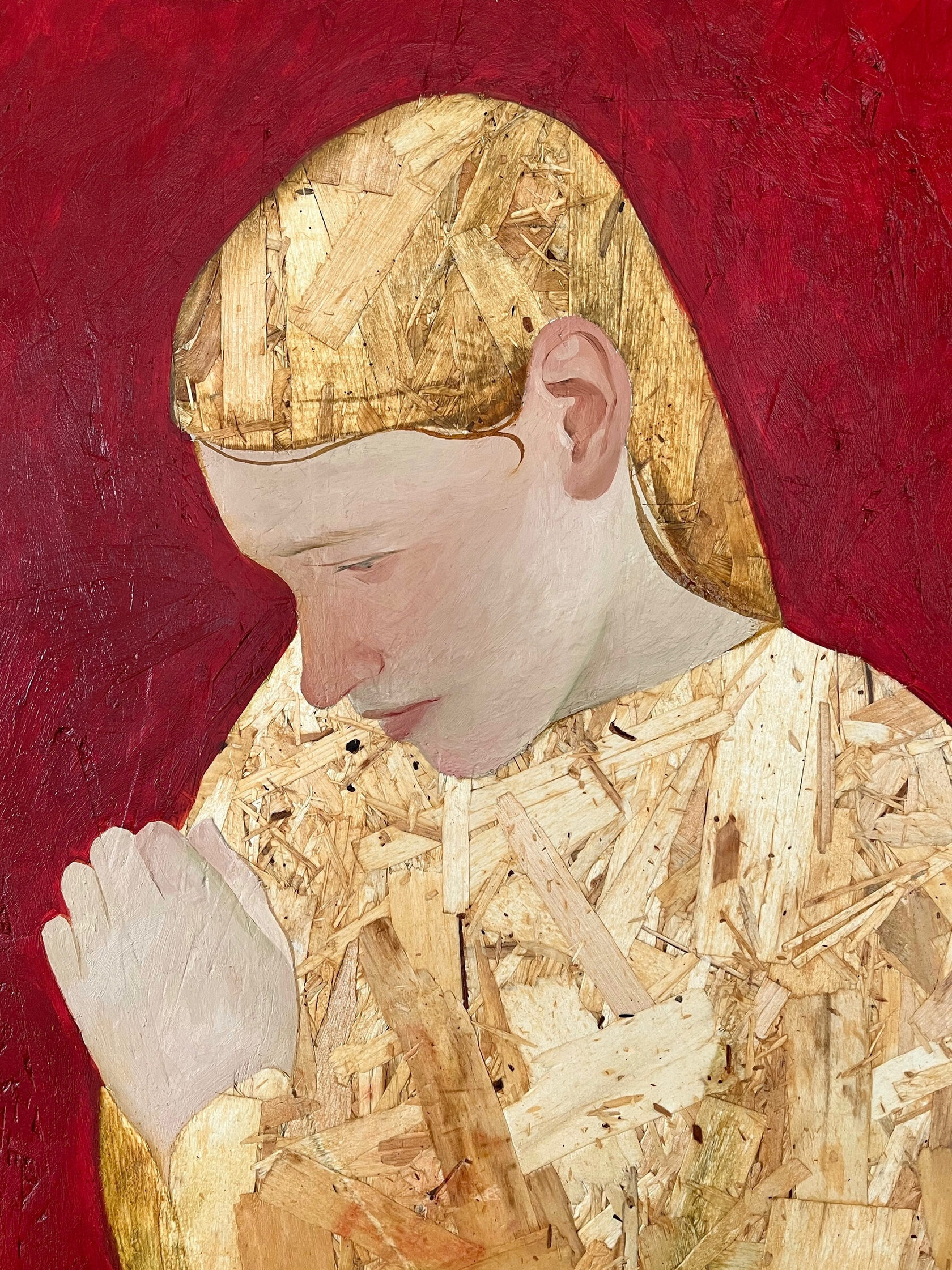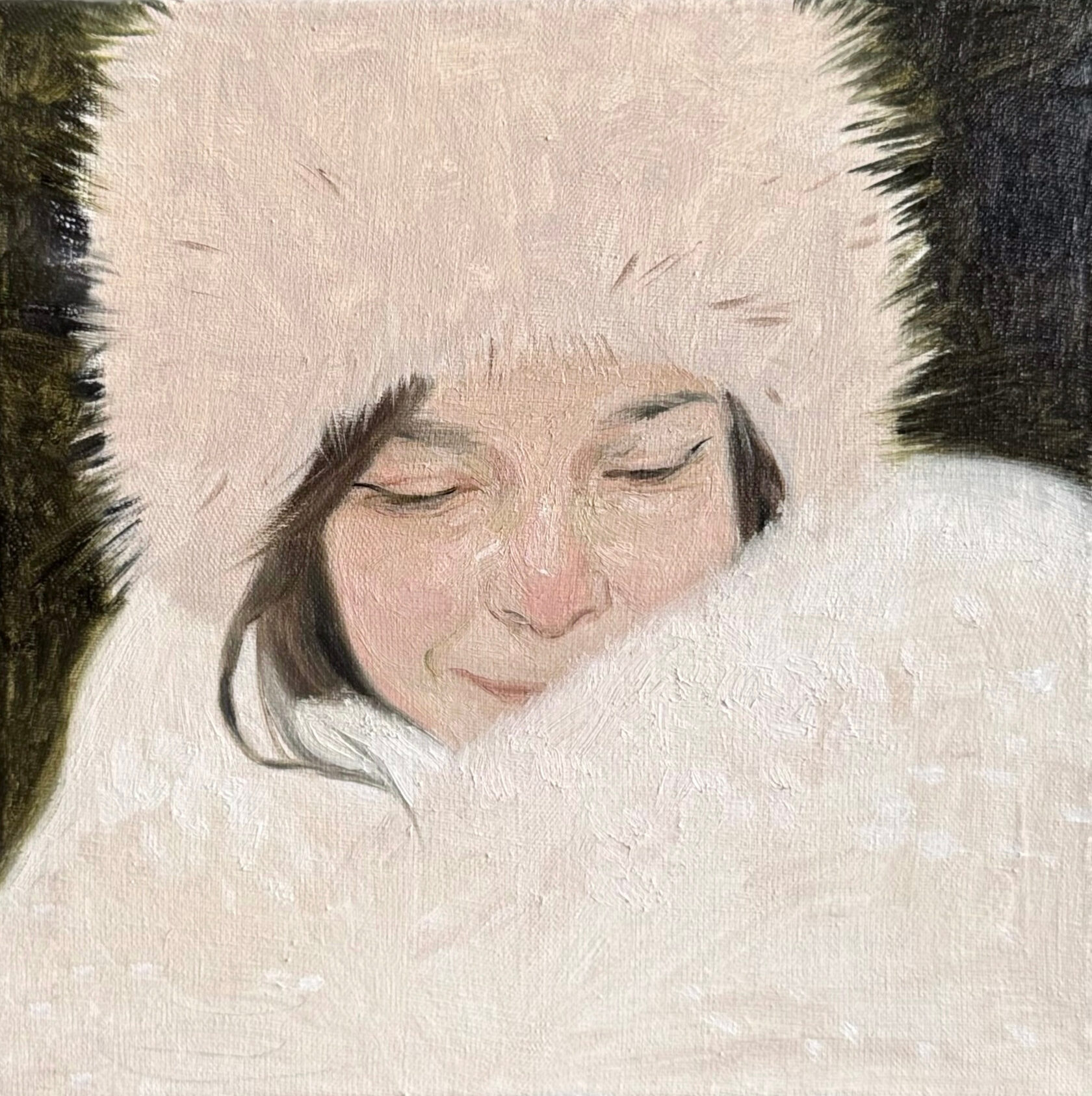 Центральная часть триптиха "Модистка", 2024 Смешанная техника, 30х30
