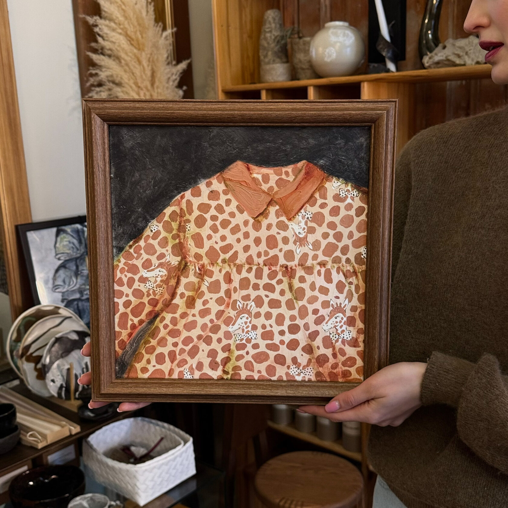 Моё платье с жирафами, которое я отказывалась надевать в садик. Оно почти не носилось, поэтому сохранилось до сих пор, в отличие от моих любимых платьев, затасканных до дыр. Это очень иронично, и мне нравится размышлять на эту тему. Забавно так же и то, что платье, которое не было оценено мной в детстве, сейчас я храню как маленькое сокровище - как одну из нескольких вещей, что остались у меня от родного дома.
