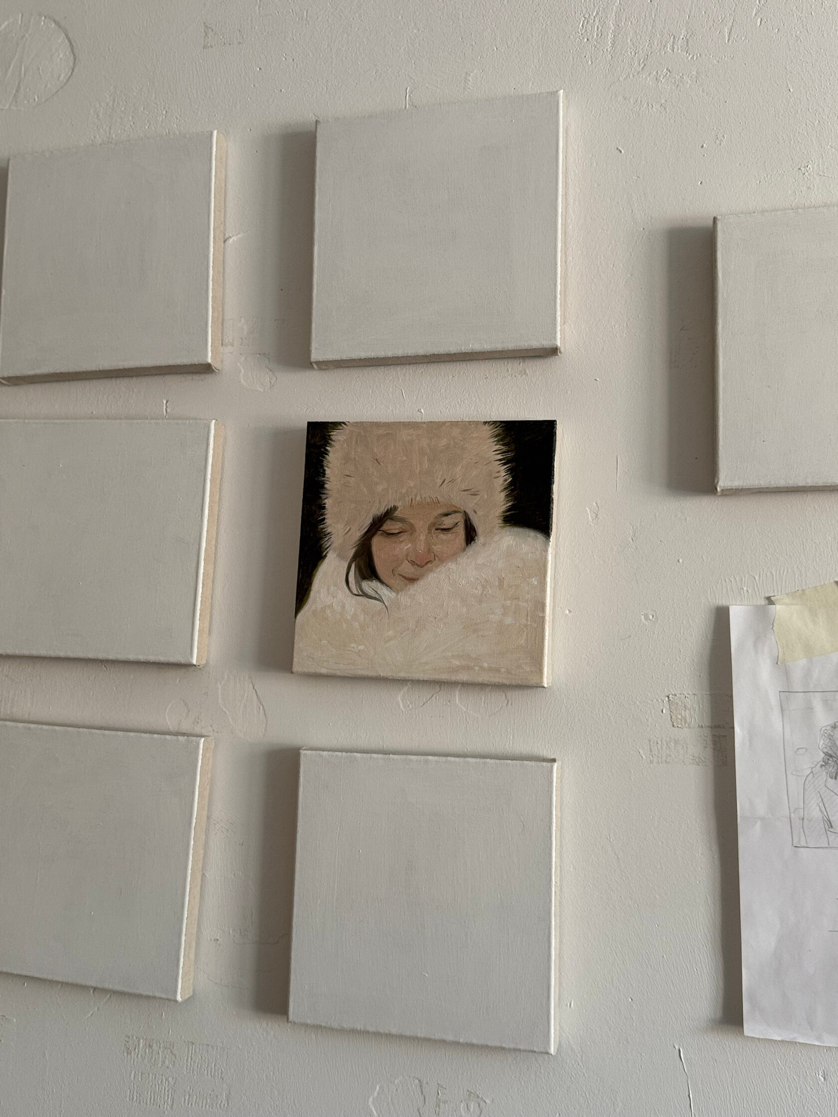 Правая часть триптиха "Модистка", 2024 Смешанная техника, 30х30